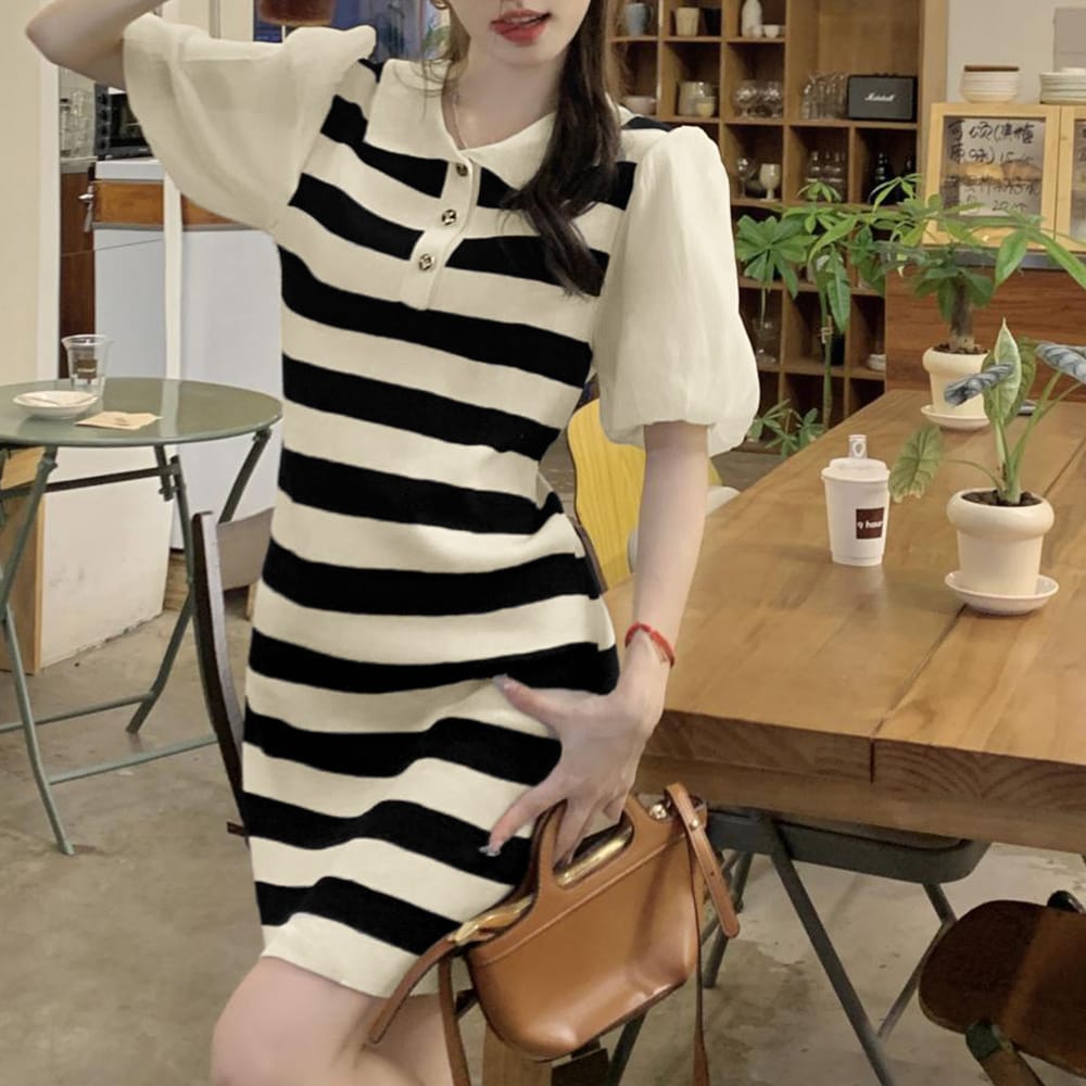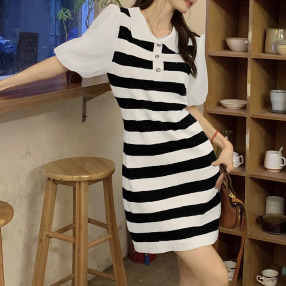 程よく体にフィットするIラインシルエットが今年らしい袖切り替えのサマーニットワンピース