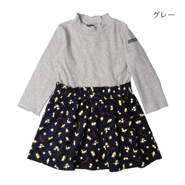 リランドチュール ドッキングワンピース 異素材切替 花柄 薔薇 サイズ1