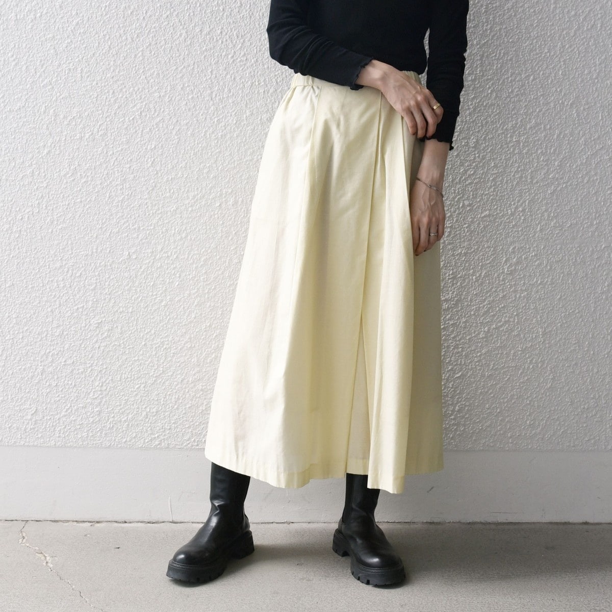 ランダムに入れたタックが、広がり過ぎない程良いボリューム感と綺麗なシルエットを演出してくれます。