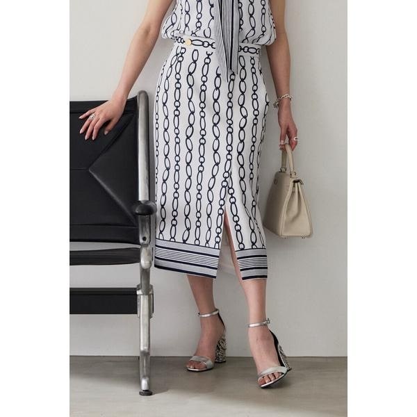 レッセパッセ 膝丈 チェーンプリント タイトスカートMサイズ