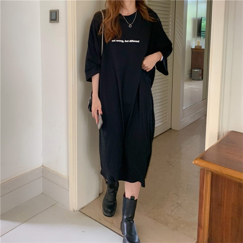 ルーズなシルエットがカジュアルで可愛いロング丈Tシャツワンピース