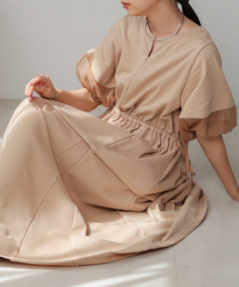 【S・Mサイズ展開】袖ボリューム前後2WAYマーメイドスウェットワンピース