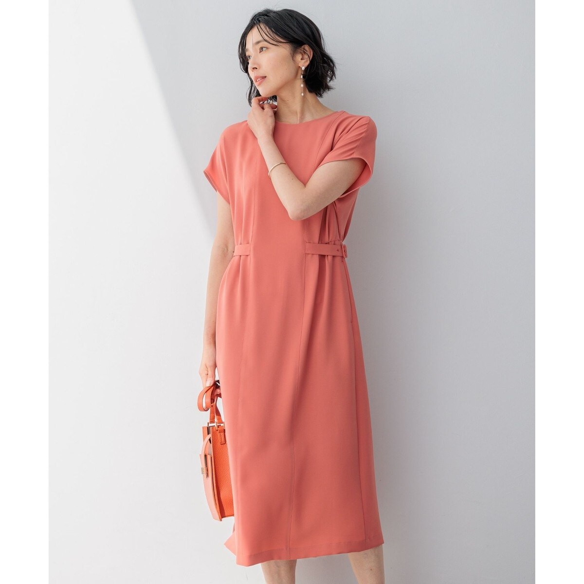 暑い時期にもさっと着られてきれい見えが叶う半袖ワンピース。落ち感のある素材を使用することで、下に流れるようなシルエットを演出します。両サイドのベルトディテールをウエスト位置やや高めに施すことで、縦長のすっきりとした着こなしが叶います。気になる二の腕も程よくカバーしてくれる袖丈で、夏に1枚で着ても着心地よく安心できる、オンオフ活躍してくれるデザインです。同素材のジレをさっと合わせるスタイルもおすすめです。カラーは、上品な雰囲気が漂うダークブラウン系(#035)、清楚な女性らしさを演出するダークネイビー(#075)、程よい甘さと品の良さを感じるテラコッタピンク系(#014)の3色展開です。ダークブラウン系(#035)とダークネイビー系(#075)は黒に近い落ち着いた色合いです。