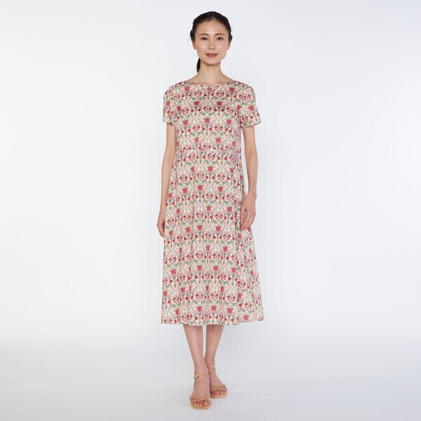 ロマンチックな表情の総花柄ワンピース。さらりと1枚で着映えする、花畑のような鮮やかな配色が魅力です。広がりを抑えた上品なAラインシルエットが美しく、デイリーユースにはもちろん、会食などのちょっとしたオケージョンシーンにもおすすめ。ボディラインを拾わないので、体型カバー効果も期待できる1枚です。