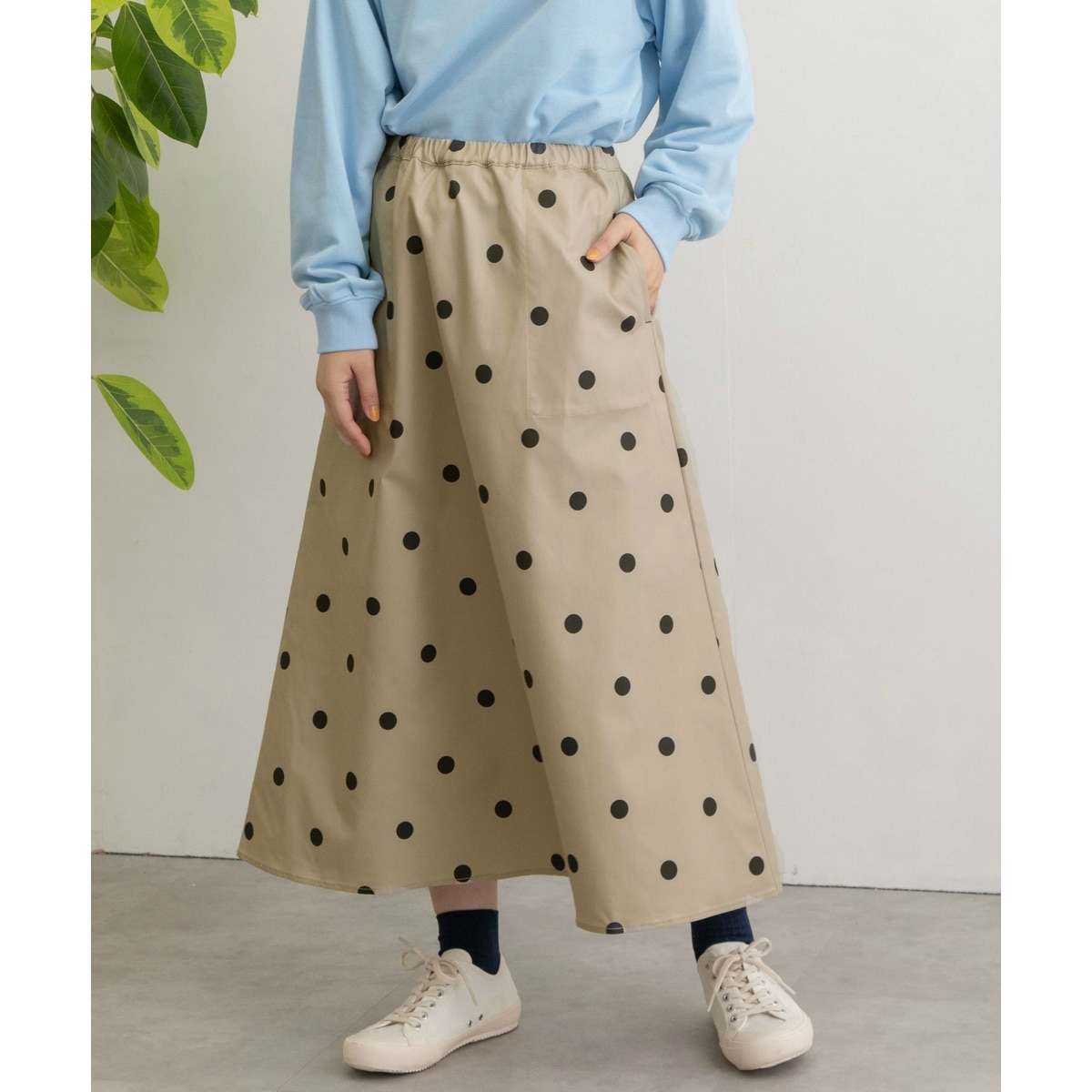 ウエスト後ろゴム ドット Aライン ロング丈スカート