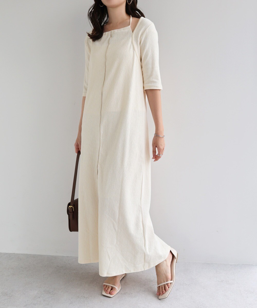 タグ付き Alma Design 楊柳 配色メロー 白ワンピース 春服