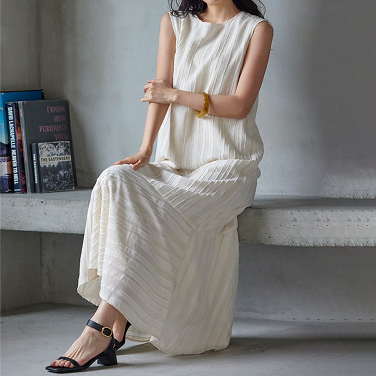 ・ストンと着るだけで絵になる、ジャカードストライプ素材が印象的なマキシ丈ワンピース。