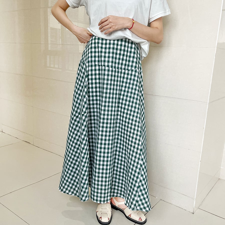 新品レディーススカート ギンガムチェック柄 Aライン ロング マキシ丈
