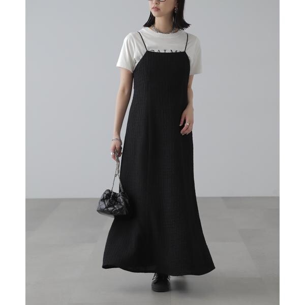 昨年ご好評いただいたキャミワンピースを今季らしくアップデートしました。チェックのような格子状のポコポコとした表面感のあるジャガード素材を使用した無地ブラックとオフカラーに加えて、からっとしたタッチの先染めチェックで、定番モノトーンカラーチェックと、新色グリーンチェックの全4色を揃えています。前は胸元のラインをすっきりさせ、後ろはカッティングを入れて抜け感のある印象に仕上げています。中にカップ付きトップス合わせや、メッシュニットを羽織るなど、ヘルシーな肌見せ感を作った着こなしがおすすめです。※こちらの商品はXSサイズの展開がございます。※モデルの着用画像の場合、光の当たり具合により、実際の色味と異なって見えることがございます。色味は、商品単体の画像をご参照ください。