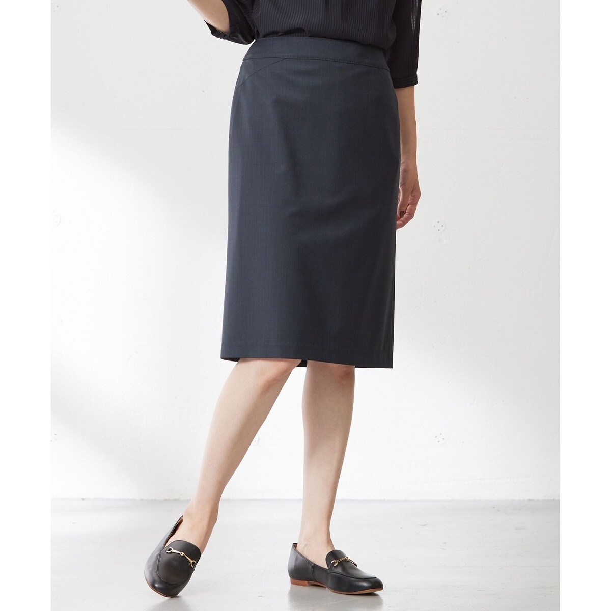前の腰回りの切り替えがポイントの、Aラインシルエットのスカート。裾に向かってゆるやかに広がり、腰回りをすっきりと見せてくれます。膝が隠れる上品な丈感で、女性らしい柔らかなデザインに仕上げました。同素材のジャケットと合わせたセットアップとしての着用はもちろん、お手持ちのブラウスやトップスなどと合わせた単体使いもおすすめ。総裏ありです。