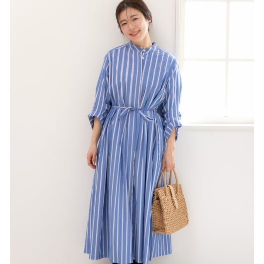 TK 白襟ストライプ長袖ワンピース カジュアル