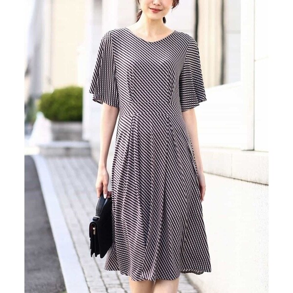 ユナイテッドアローズ ワンピース 半袖 洗える 幾何学模様 ウエストゴム