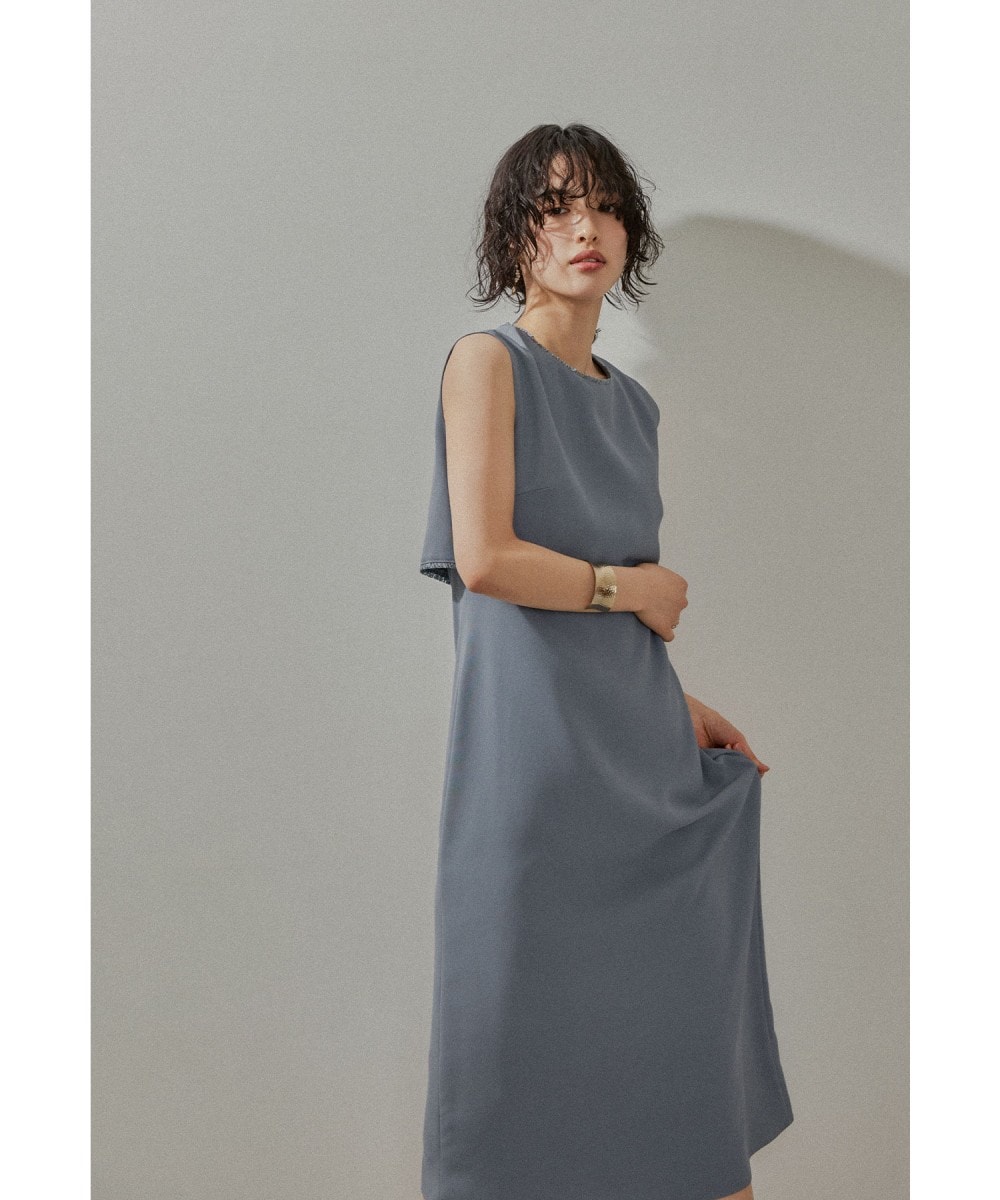 襟ぐりにあしらわれたレースパイピングで、フェミニンさをプラス。
