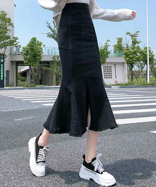 フレアタイト裾 デニムスカートセンタースリットマーメイドスカート