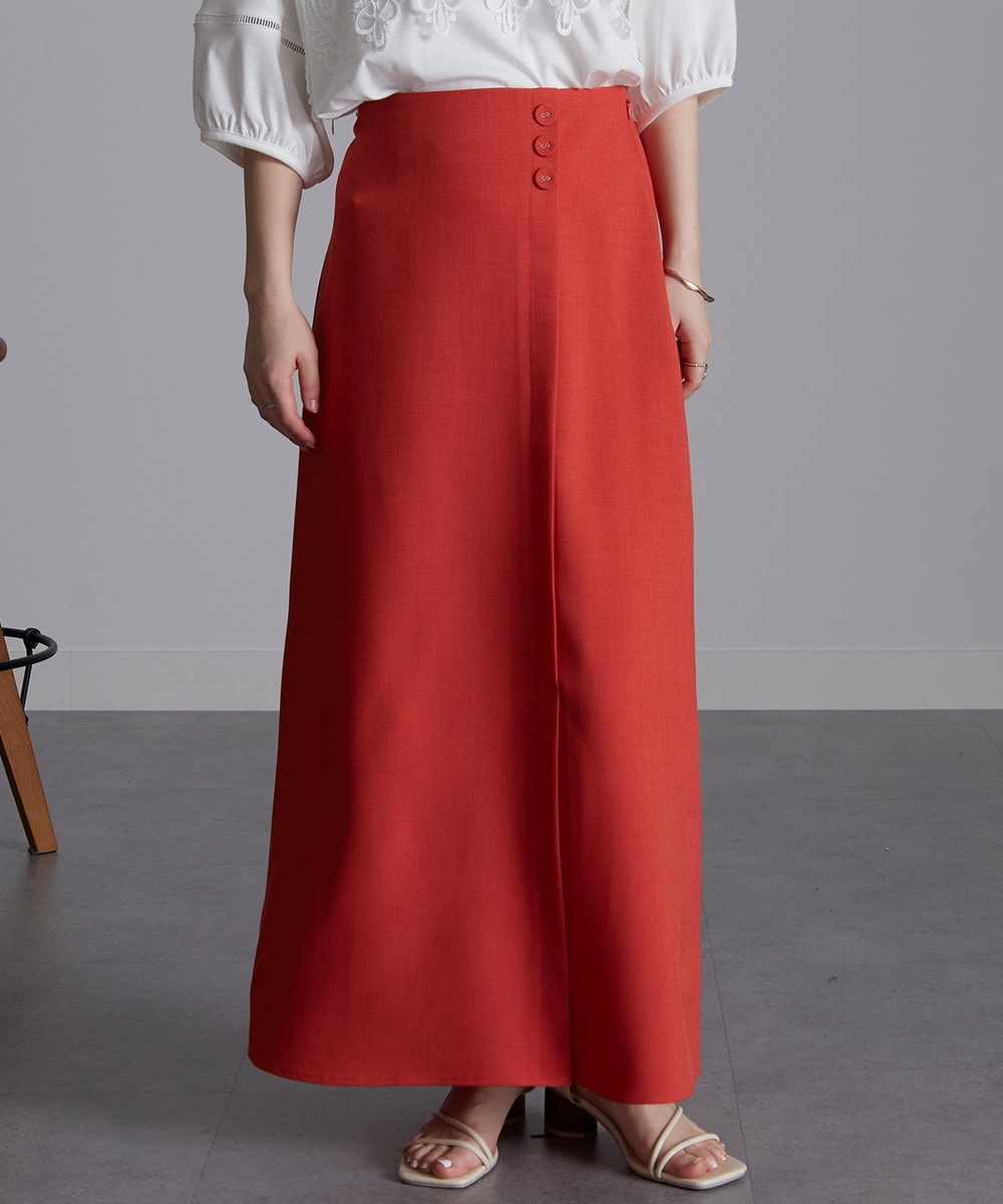 INGEBORG / 麻混ボタン使いロングスカート M ピンク O-25-03-26-1060-LO-SK-OW-ZT234