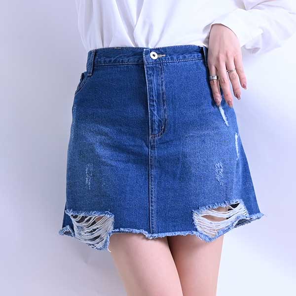 ダメージ加工デニムのミニスカートです。オールシーズン活躍してくれる、デニム素材。伸縮性はありませんが、柔らかく穿き心地も抜群です☆窮屈感なくコンパクトなシルエットに見せてくれます。ウエストは柔らかいバックゴムでとても楽ちんです。便利なポケット付き。カッコいいダメージ加工で、ヘルシーな肌見せコーデに仕上がります。