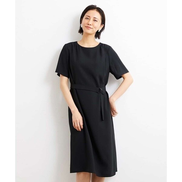 二の腕周りを優しくカバーしてくれるシンプルなワンピース。前後の肩からのタックが身幅を小さく見せてくれる効果があり、着やせ効果のある1枚となっております。ベルトでウエストをしめれば、エレガンス感が感じられる裾の分量にしてあります。1枚で主役になれるワンピースです。