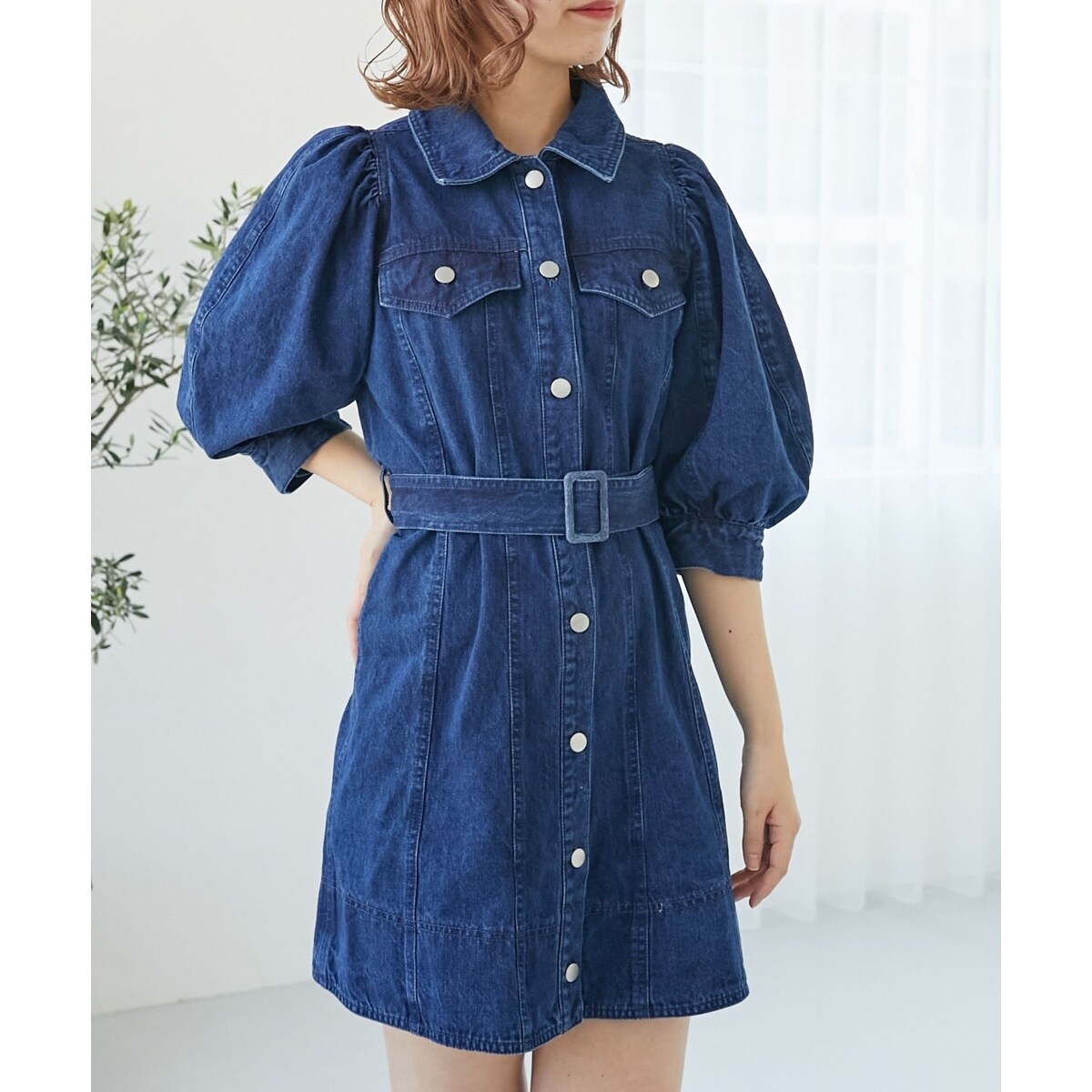 ベルト付きデニムミニワンピース[cu547]