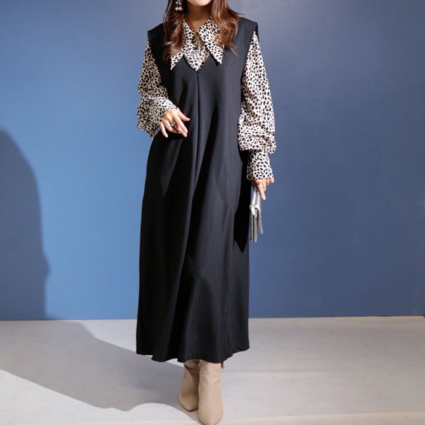 【大きいサイズ】 プリーツイレギュラーヘムレイヤードノースリーブワンピース 大きいサイズ レディース