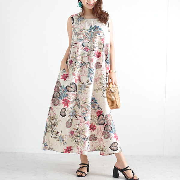 ノースリーブワンピース aライン ワンピース レディース ロングワンピース マキシ丈ワンピ 綿麻風 ワンピース ノースリーブ ゆったり 体型カバー aライン フレアabm04
