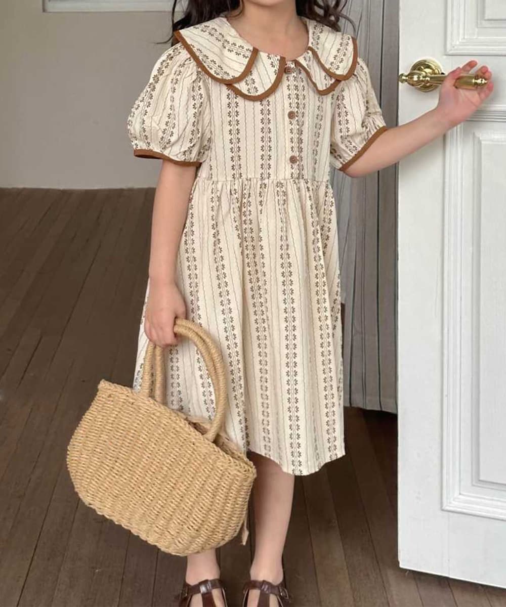 ナチュラルな生地感と優しい色合いで、特別なお出かけにもぴったりの一着です。