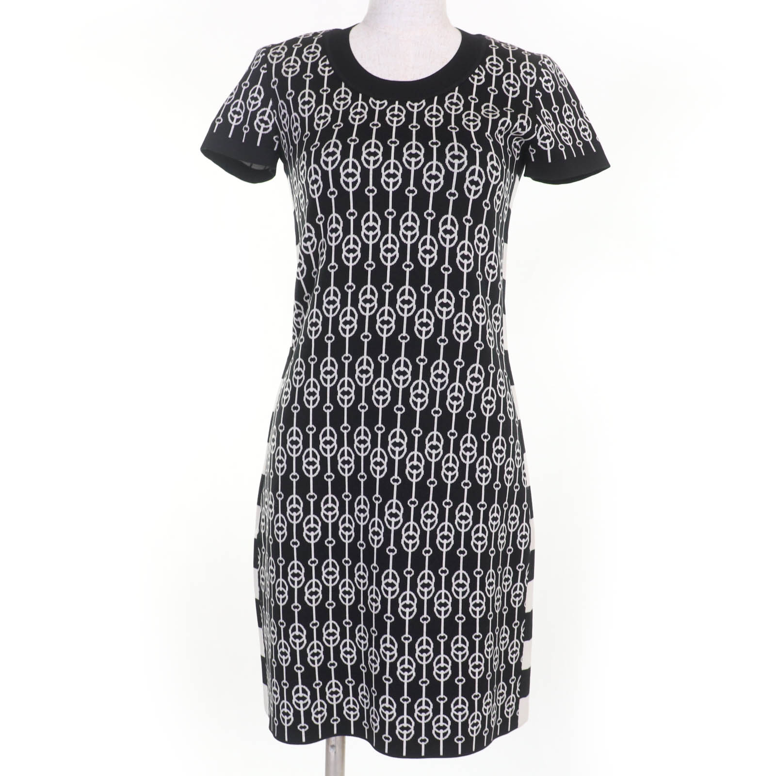 極美品★HERMES エルメス ジグザグ シルク カチューシャ ヘアアクセサリー ホワイト ブラック フランス製 レディース【中古】
