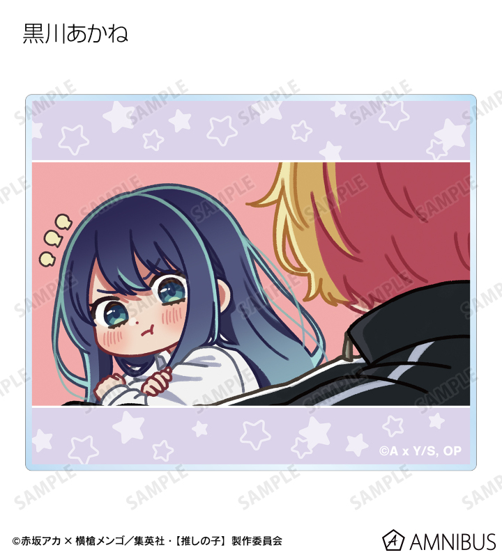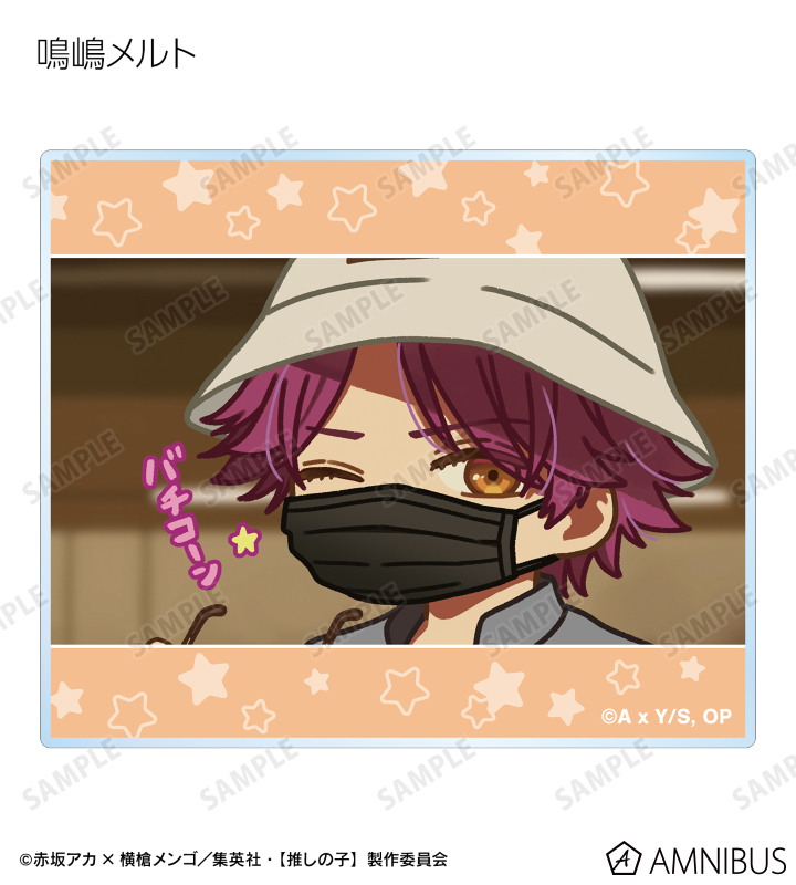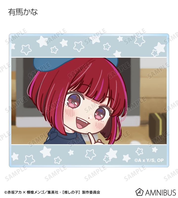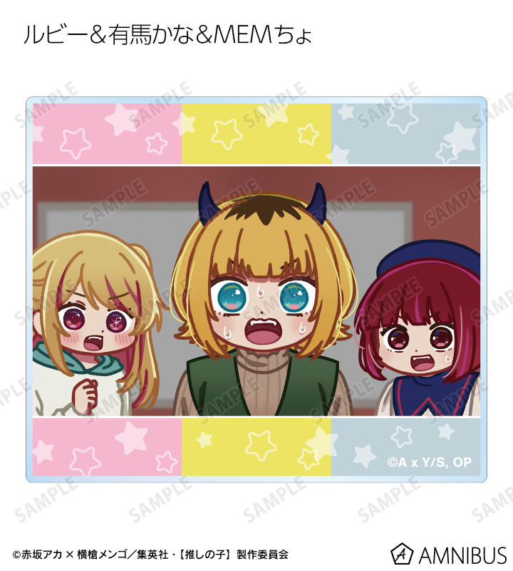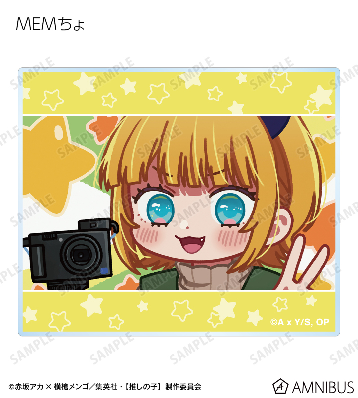 アイ、アクア、ルビー、有馬かな、黒川あかね、MEMちょ、姫川大輝、鳴嶋メルト、鴨志田朔夜の印象的なシーンのゆるコマイラストを、アクリルカードに仕上げました。