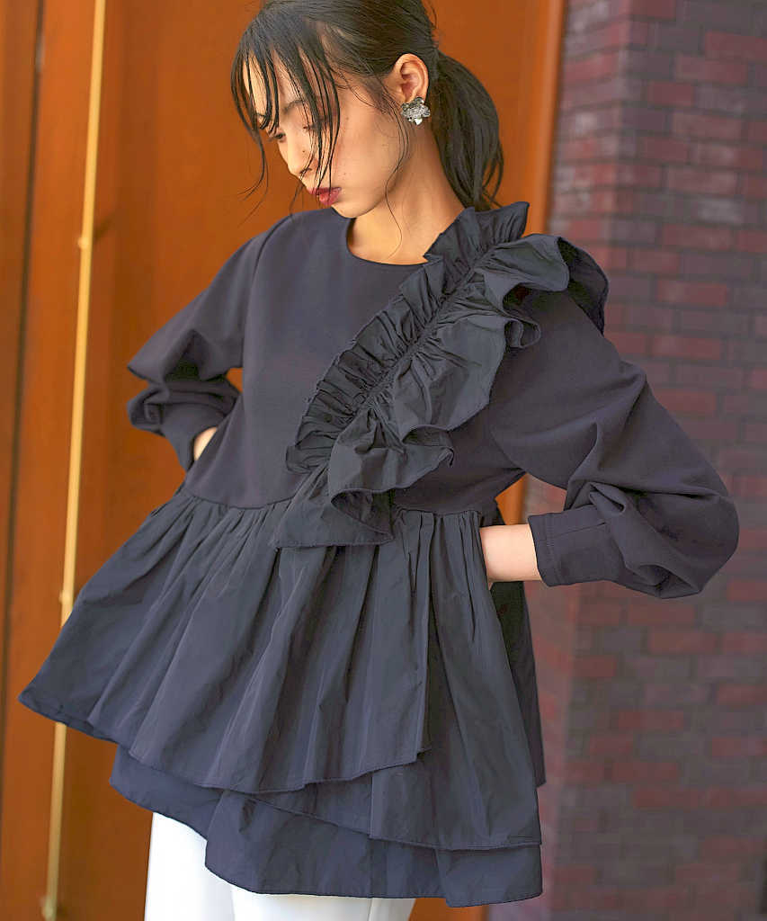【洗えるS-LL】ティアードフリルサロペット