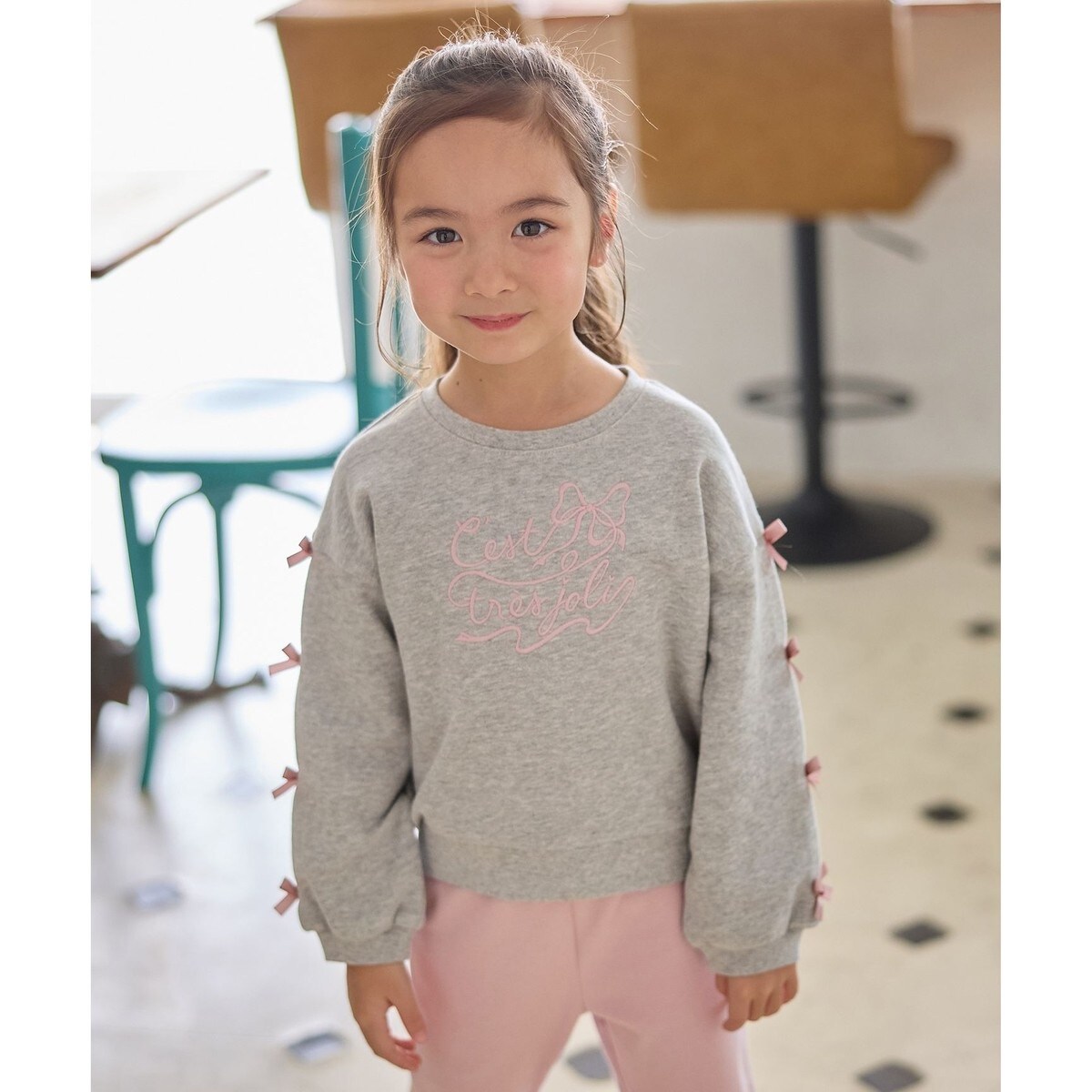 ANY KIDS/エニィキッズ/any FAM/any FAM KIDS/エニィファム/エニィファムキッズ/キッズ/トレーナー/長袖/トップス/ロゴ/リボン/人気/通園/通学/デイリー/女の子/ガール/サスティナブル商品/トレンド