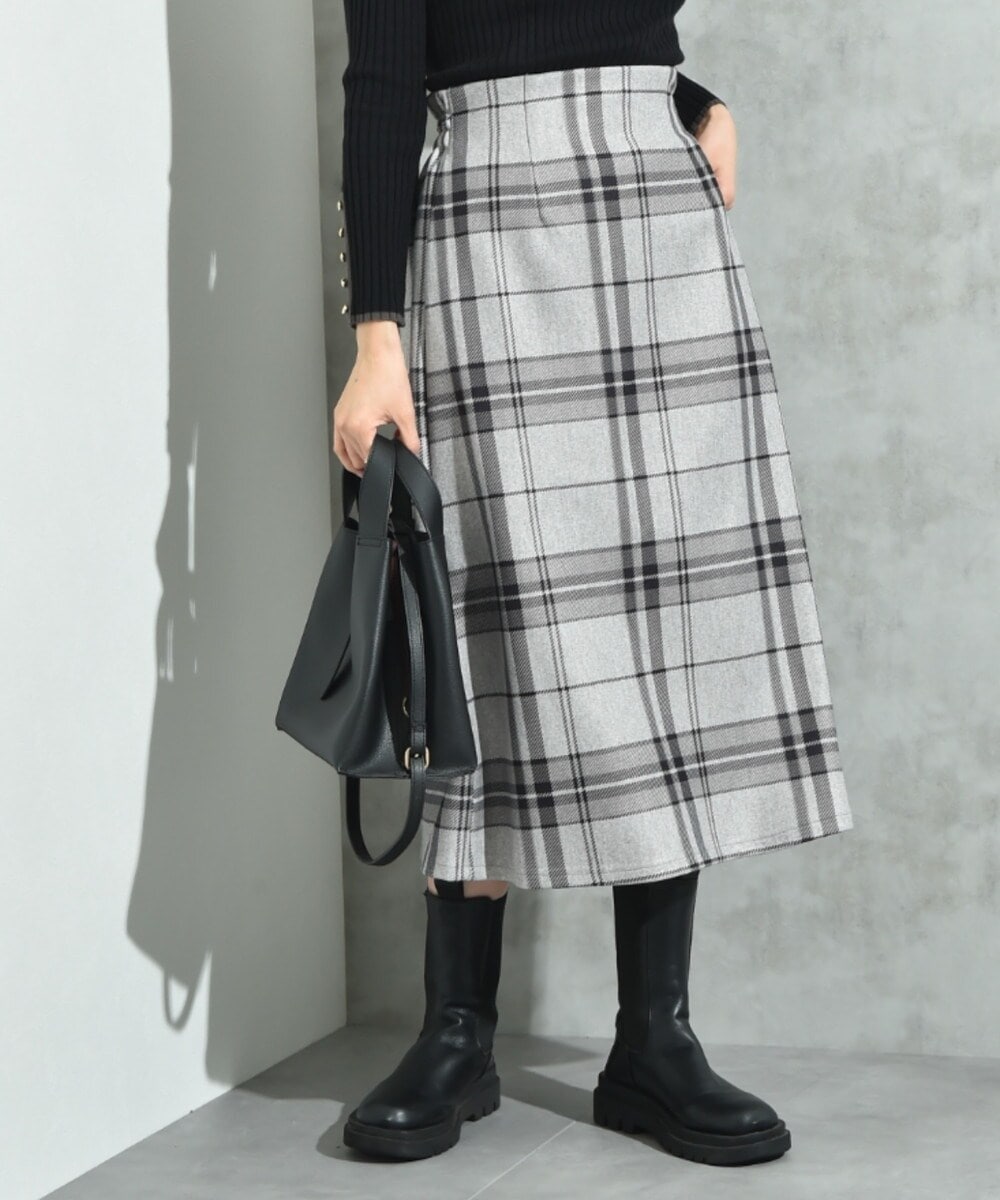 prose verse スーパーストレッチ起毛チェックナロースカート