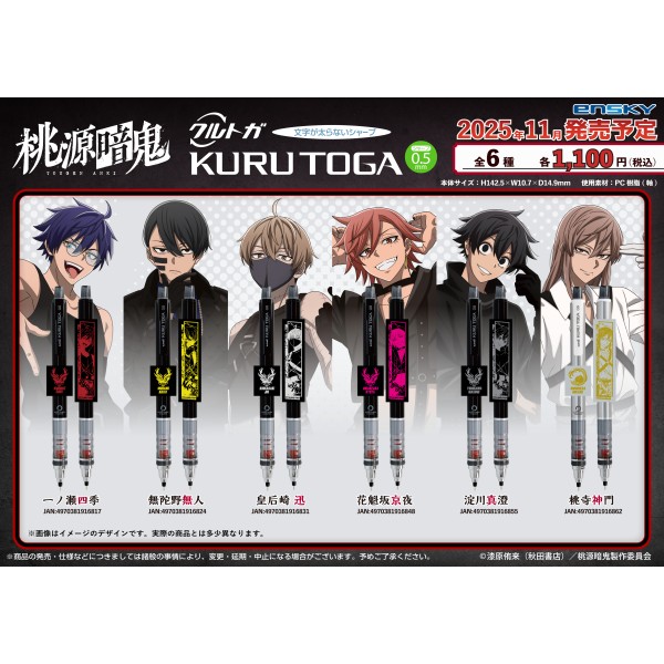 芯が回って尖り続けるシャープ「クルトガ」シリーズからTVアニメ「桃源暗鬼」モデルが登場。