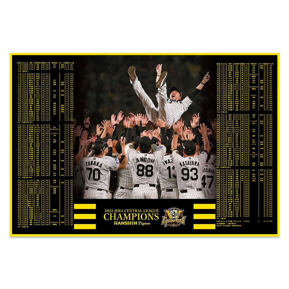 まるでシーズンを振り返る年表のようなビッグタオルは、観戦の思い出を蘇らせるとともに、部屋に飾れば熱きシーズンをいつでも実感できる“虎党必携アイテム”。