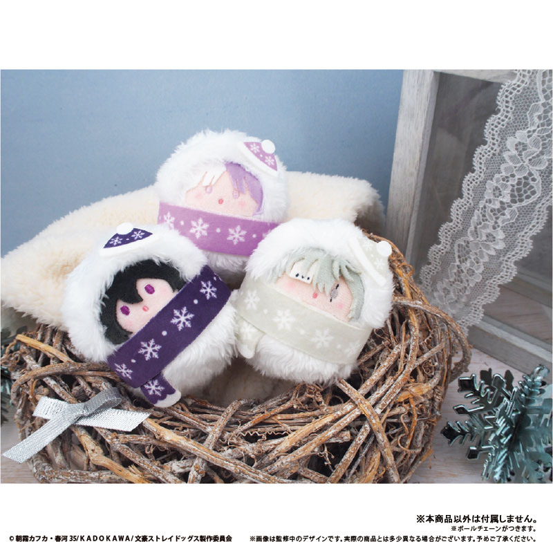 1BOX購入で全8種揃います。 TVアニメ『文豪ストレイドッグス』から「くるみたぴぬい雪だるまVer.」が登場です! ふわふわ素材にくるまれた、手のひらサイズのマスコットです♪