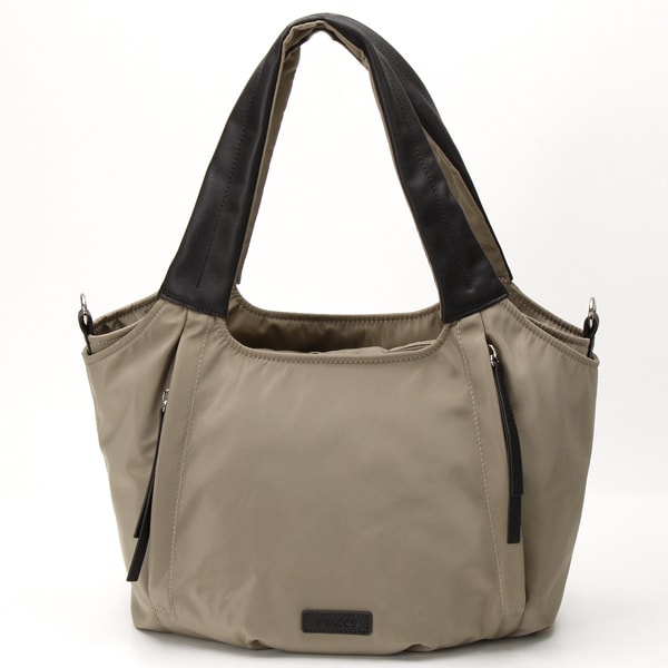 すっきりとしたシルエットにタックを寄せほど良くフェミニンに仕上げた2WAYトート。