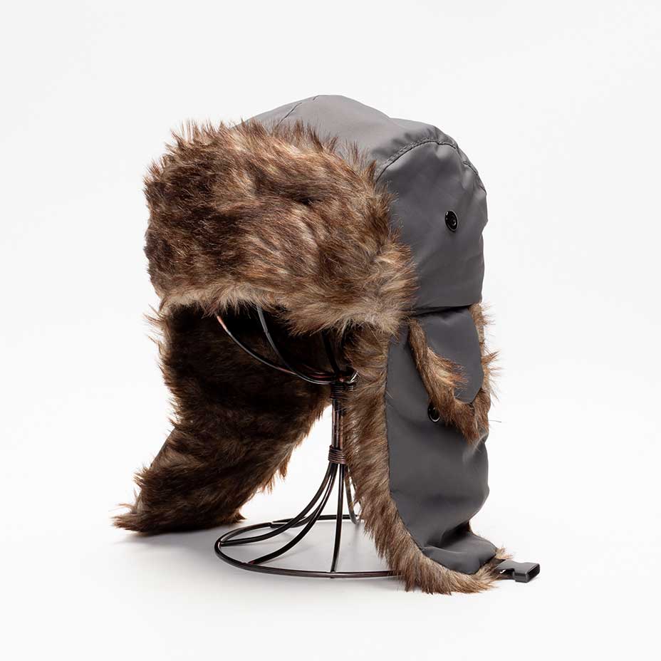 イヤーフラップを頭の上で止める、おろしっぱなし、顎で止めたりと選べる3WAY仕様。
