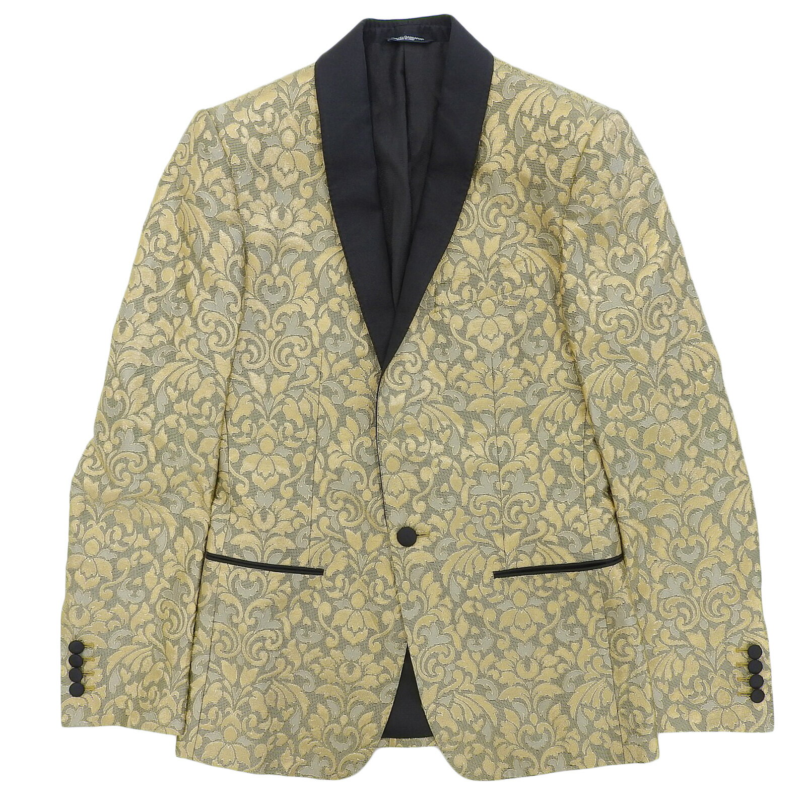 極美品▲DOLCE&GABBANA ドルチェ&ガッバーナ GOLD シルク混 ナローラペル シングル テーラードジャケット グレー 44 イタリア製 正規品 メンズ【中古】