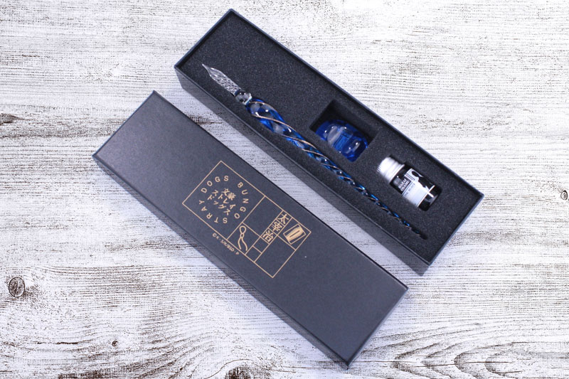 【サイズ】ガラスペン:約H12×約W182×約D12mm、ペン置き:約H26×約W37×約D13mm、インク:約H42×約W20mm 【素材】ガラス 【その他】インク:黒 【セット内容一覧】 ガラスペン ≪初回生産特典≫ 「太宰治」のミニポストカード