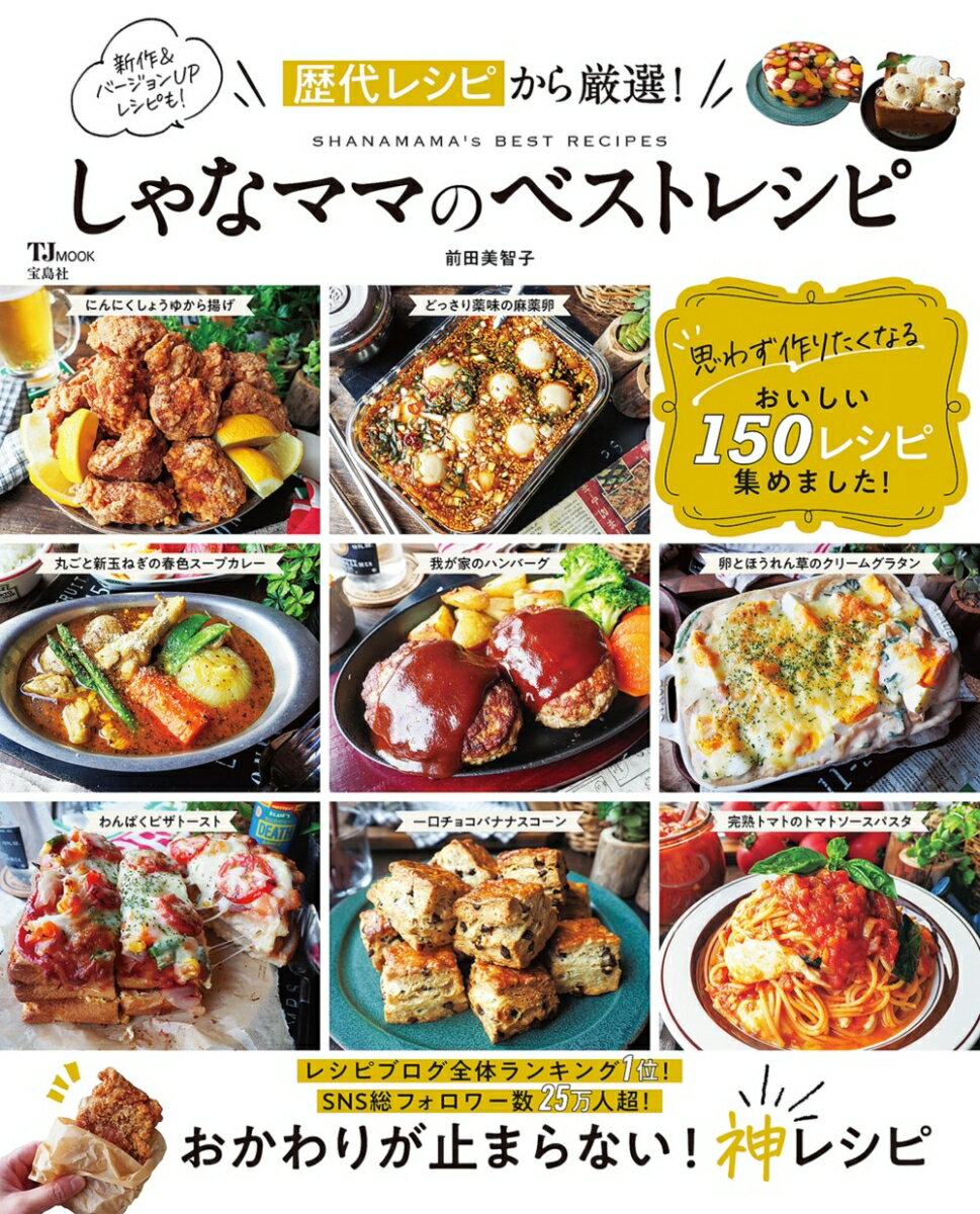 レシピブログ全体ランキング1位、SNS総フォロワー数26万人超!大人気料理ブロガー・しゃなママの最新刊は、歴代レシピの中から特に人気の高い150品を集めたベスト版です。SNSで反響の大きかったレシピ、YouTubeでも話題になった「麻薬卵のアレンジレシピ」、新作、バージョンUPレシピなど、思わず作りたくなるおいしいレシピばかりです!これ1冊あれば朝ごはんからランチ、おやつ、夕ご飯、夜食、イベントレシピまで網羅できる超お役立ちの1冊です。<もくじ>●Part1 しゃなママごはん 歴代BEST20絶品イタリアンチキンソテー、チーズイン煮込みハンバーグ、どっさり薬味の麻薬卵、にんにくしょうゆからあげ、まるで宝石みたいなフルーツゼリーケーキなど●Part2 肉と魚のおかずBEST ガリバタ皮パリ照り焼きチキン、丸ごとささみのチキン南蛮、しっとりやわらかローストビーフ、ぜいたくほろほろビーフシチュー、秋ざけとじゃがいものパイ包みなど●Part3 野菜のおかずBESTわが家の肉じゃが、蒸しナスのトマトユーリンチー風、どっさり夏野菜のラタトゥイユ、わが家の麻婆大根、きのこと野菜の豆乳チャウダーなど●Part4 麺とごはんとパンBEST 明太クリームパスタいくらのせ、あつあつかきたまあんかけうどん、ねぎだく塩焼きそば、チーズインねぎ塩肉巻きおにぎり、わんぱくピザトースト、塩あん天津飯など●Part5 簡単おやつBESTしっとりふわふわバナナケーキ、どんぐりクッキー、ベイクドチーズケーキ、超絶なめらかジャンボプリン、とろみつ大学芋など