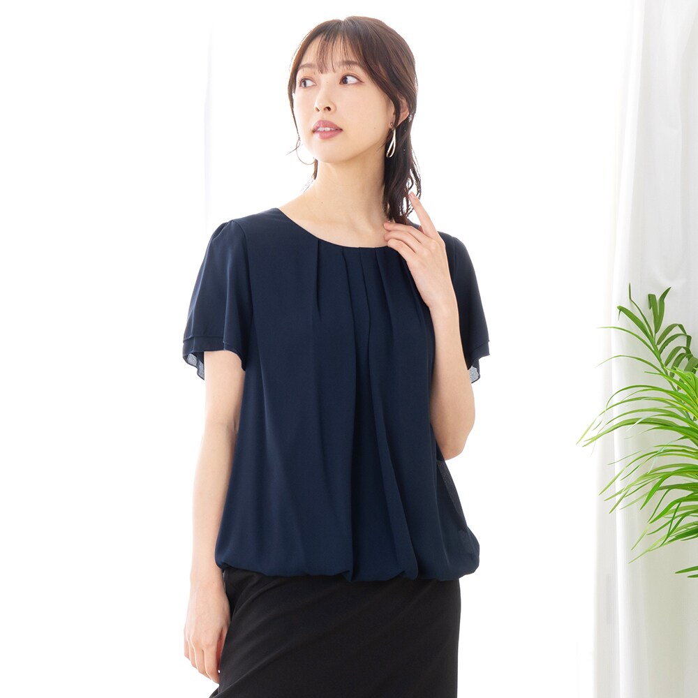 トップス シフォン / ポリエステル素材 / 無地 / 半袖 / フレアスリーブ / LL・13号以上あり / S・7号以下あり / 大きいサイズあり / 洗える / ラウンドネック / パーティー・結婚式・二次会 / カジュアル / セレモニー・入学式・卒業式 / レギュラー丈(トップス)