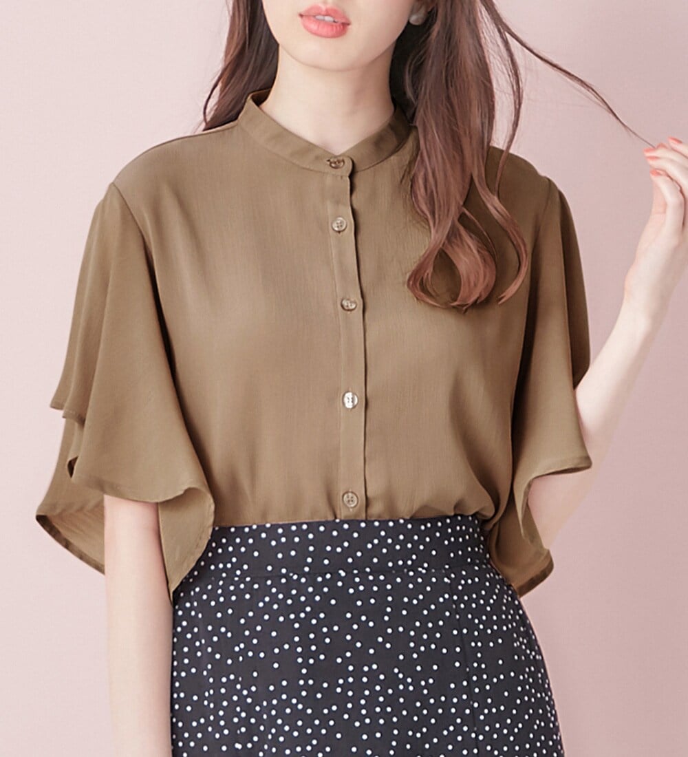 シフォン楊柳バンドカラーシアーブラウス セレクトモカ