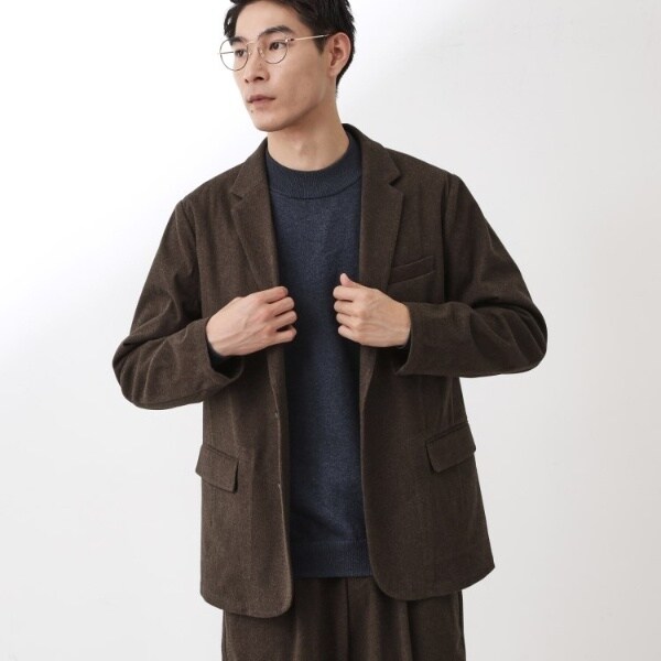 ウールのような上品な見た目と、ジャージ素材ならではの軽さ・伸縮性を兼ね備えたジャケット。