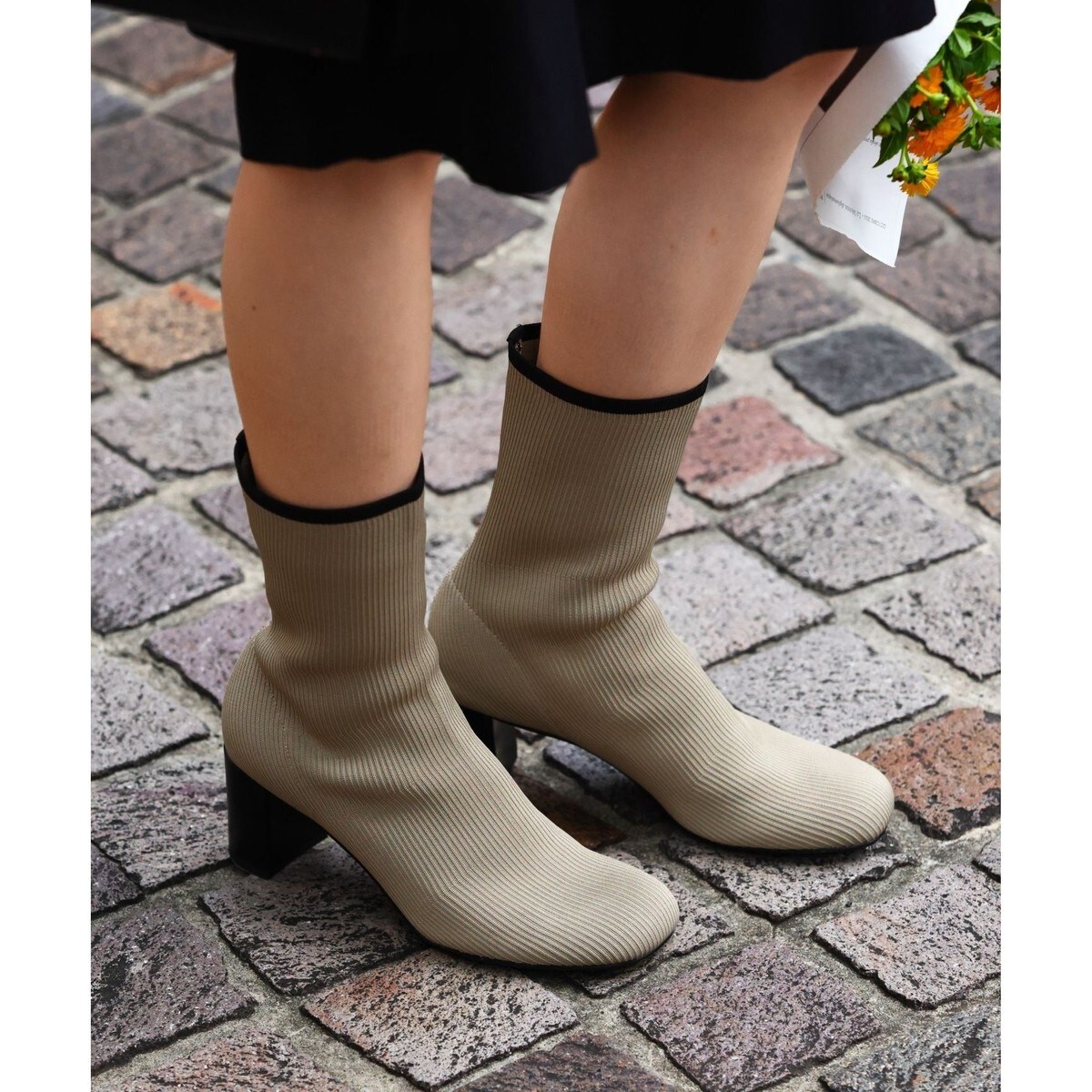 足指の形に沿った自然なオブリークトゥ形状がトレンドで、締め付け感のない快適な履き心地。エレガントで洗練された印象の細いリブ編みのニットアッパーは足を綺麗に見せてくれ、甲部分をしっかりホールドするのでヒールでも歩きやすくなっています。