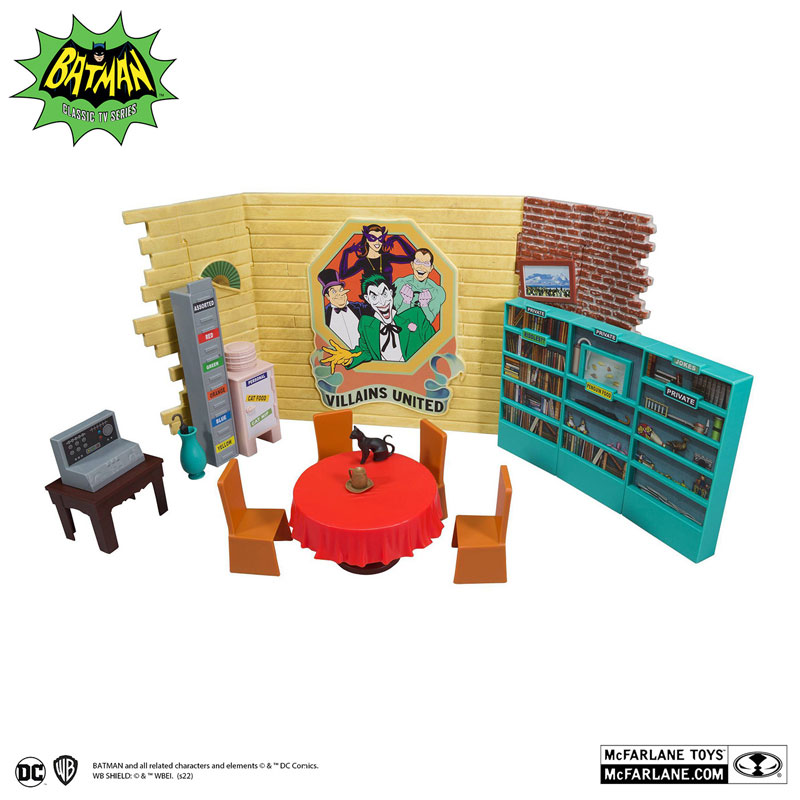 高い造形力とクオリティーに定評のあるマクファーレン・トイズがお贈りする、6インチ・アクションフィギュア「DCレトロ」シリーズ。TVドラマ『バットマン 1966年TVシリーズ』より、ヴィランの隠れ家がラインナップ!