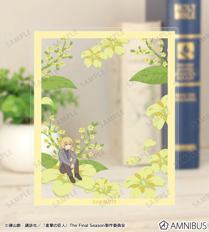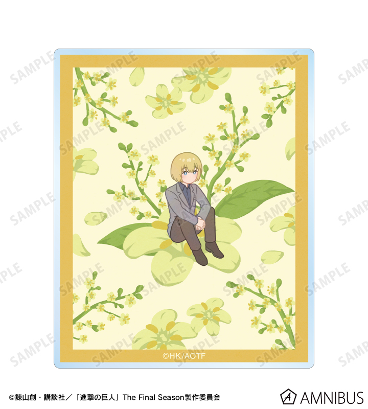 アルミンのイラストをボタニカルデザインに落とし込んで繊細なタッチで新たに描き起こし、アクリルカード2枚セットに仕上げました。