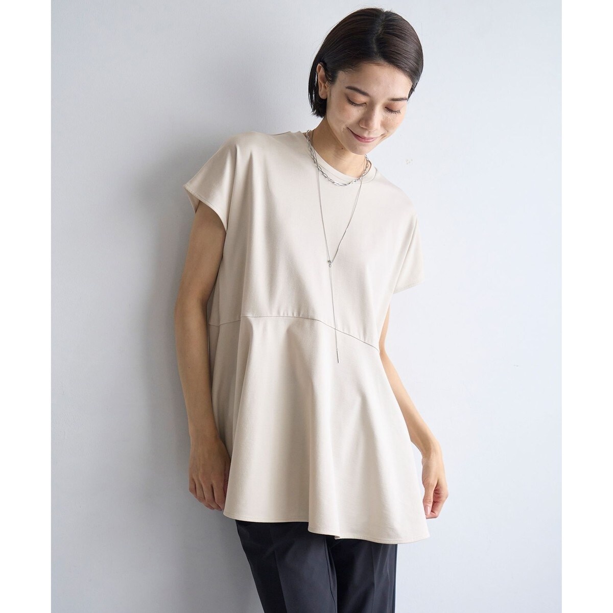 ■デザイン人気のBEAUTY FORMシリーズに新型のペプラムTシャツが新登場!動くたびに揺れるペプラムが、品のある華やかな印象です。切り替え部分はフィットさせすぎず、美しいラインを出せるようシルエットを追求しました。やや高めの切替位置でスタイルアップ効果もあり、ヒップが隠れる着丈も嬉しいポイント。スタイルアップを叶えつつ、女性らしい着映え力のある1枚です。パンツと合わせたスタイリングがおすすめです。スッキリとしたタイトスカートとも好相性です。