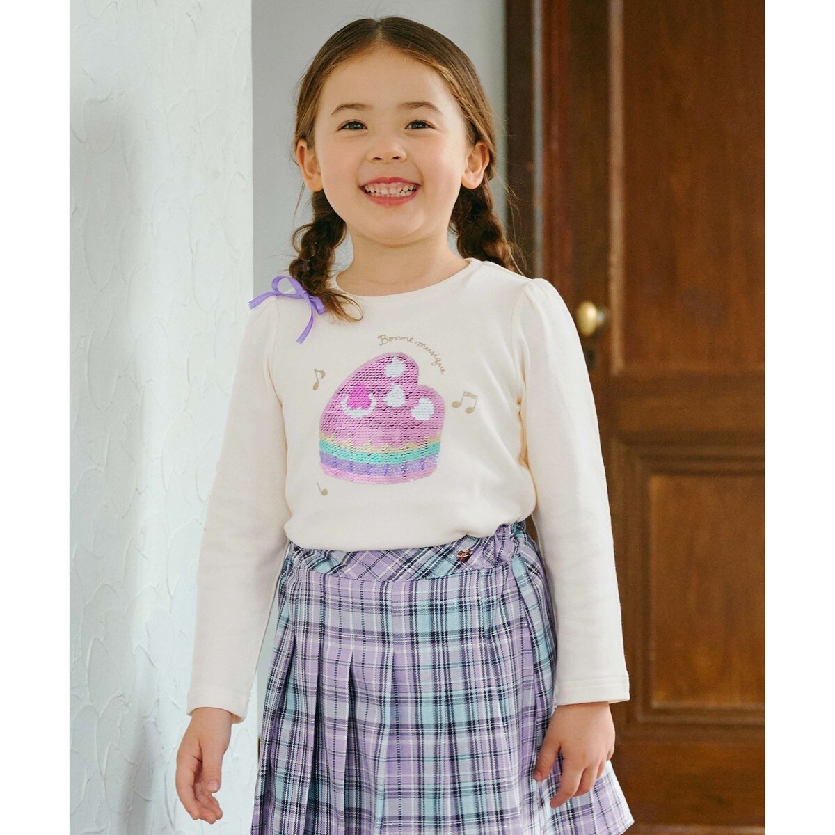 キッズ/長袖/ Tシャツ/スパンコール/ケーキ/ネコ/通園/通学/人気/デイリー/女の子/ガール/サスティナブル商品/コスパ高/トレンド/プチプラ