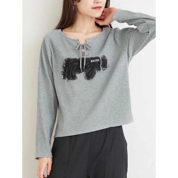 ロゴ刺繍ワッペンが効いたクールな大人カジュアルトップス。