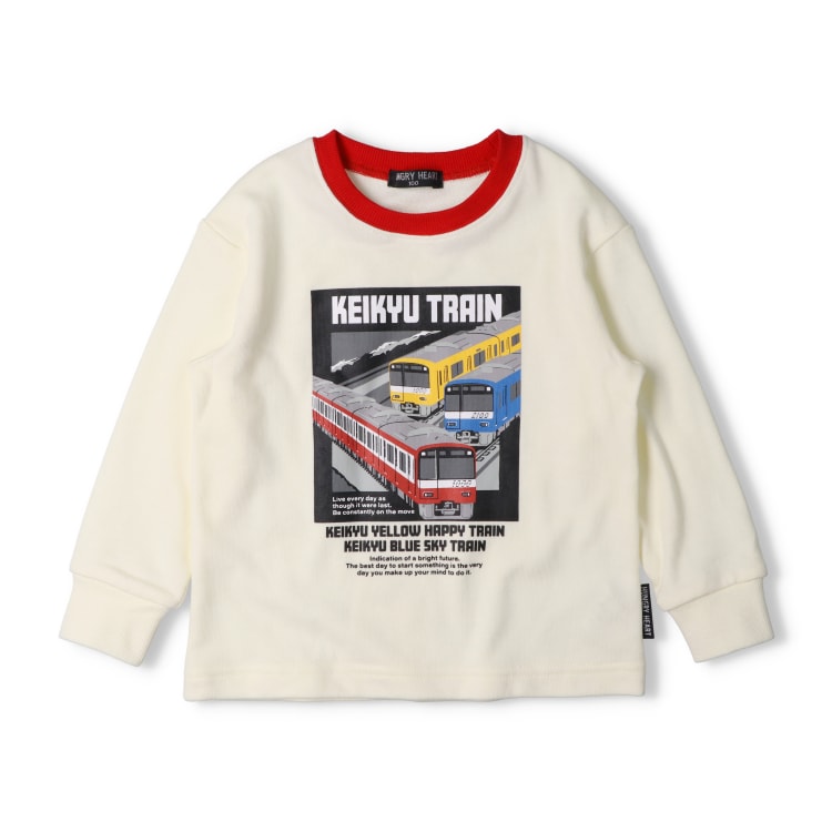 男の子が大好きな電車!京浜急行電鉄株式会社商品化許諾済み商品です。赤い車体の新1000形、イエローハッピートレイン、ブルースカイトレインの車体の写真風のプリント入り。秋から春まで長く着られる裏毛素材のトレーナー、スウェット。【アイテム】長袖 ロングスリーブ トップス カジュアル お洒落 オシャレ かっこいい かわいい 可愛い 普段着 デイリーウェア お出かけ着 お外遊び着 子ども こども 男児 男の子 ボーイズ キッズ ベビーサイズ トドラーサイズ 幼稚園 保育園 小学校 通園 通学 小学生 2025年秋冬物新作 丸高衣料 鉄道 子鉄 車両 電車 電鉄 トレイン ハングリーハート オフホワイト 白色 ライトグリーン 緑色