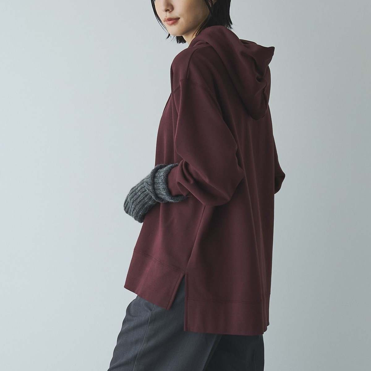 綿×ポリエステルの滑らかな生地を使用したパーカー。