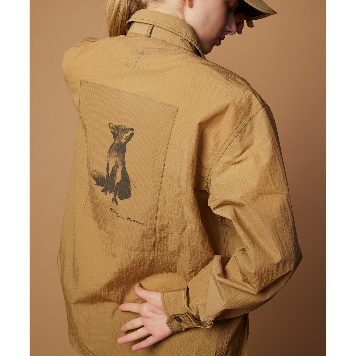 ■デザインハンタージャケットをシャツで表現し、左胸ポケットにはサングラスホルダーを搭載。新感覚なシャツアウターをお楽しみください。